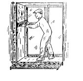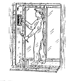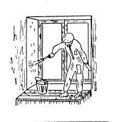 оконной коробке, и движениями снизу вверх выравнивает нанесенный слой