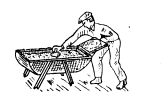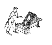 борт ящика, приподняв другую на 10 см, набирает кельмой раствор, затем
