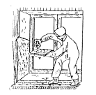 откосу, кельмой берет с сокола порцию раствора и резким движением от себя
