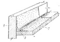 1 - парапетная стенка; 2 - слой утеплителя; 3 - цементная стяжка.