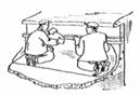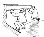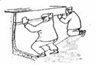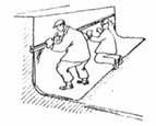 К-1 и К-2 берутся за верхнюю часть полотнища и, слегка натянув его, прижимают к вертикальной поверхности, придерживая нижнюю половину ногами |