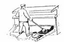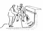 Наклеив последний слой рубероида, К-1 удочкой наносит на него мастику. К-2 лопатой посыпает его песком. Остатки песка сметаются метлой по окончании всех работ |