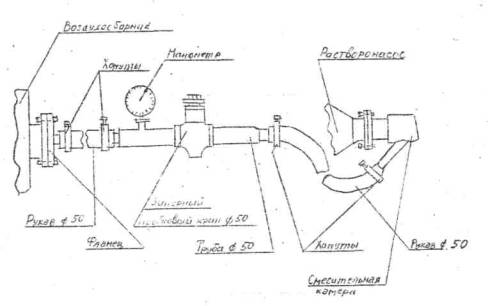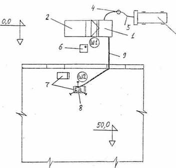 Примечание. В затраты труда включено время на подготовительно-заключительные работы (5 %) и отдых (10 %) 2. Условие и подготовка выполнения процесса2.1. До начала подачи жесткого раствора в помещения реакторного отделения необходимо; проложить напорный рукав (штукатурный шланг, рассчитанный на давление 10 кгс/cм2); подсоединить его к гасителю; подвести к установке от компрессора сжатый воздух (Рис.1); обеспечить подъезд автосамосвалов с раствором к установке; доставить на рабочие места инструменты и приспособления. 2.2. Перекачиваемая смесь должна быть хорошо перемешана, одного состава, постоянной подвижности. 2.3. Работы следует выполнять, соблюдая правила техники безопасности и охраны труда рабочих в соответствии с главой СНиП III-4-80 "Техника безопасности в строительстве". 2.4. Режим труда и отдыха определен из условия оптимально высокого темпа выполнения трудовых процессов в соответствии с "Руководством по техническому нормированию труда рабочих в строительстве" (М., Стройиздат, 1977). 3. Исполнители, предметы и орудия труда3.1. Исполнители: Штукатур 2 разр. (Ш1, Ш2) - 2 3.2. Инструменты, приспособления и инвентарь