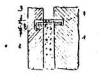 Рис.2 Крепление облицовки при помощи костыля 1 - стена; 2 - облицовка; 3 - раствор; 4 - костыль. 4.2.2. При помощи анкерной лапы Диаметр лампы 10-16 мм; расстояние между раздвоенными концами 12-15 см; длина хвостовой части, заделанной в стену - 15-25 см. Хвостовую часть заливают цементным раствором состава 1:1.