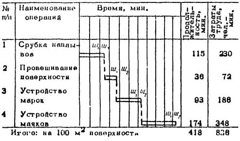 маяки вырубают и образовавшиеся пустоты заполняют цементно-известковым