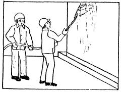накрывочного слоя на стены движением форсунки сверху вниз и слева направо,