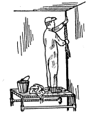контуру дверной коробки), штукатур Ш-1 берет в левую руку деревянную