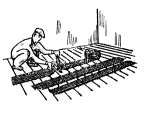Штукатур Ш-1 смачивает прядь пакли в гипсовой заводке и закладывает в