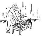 конопатку, а в правую - киянку и, ударяя киянкой по конопатке, забивает паклю