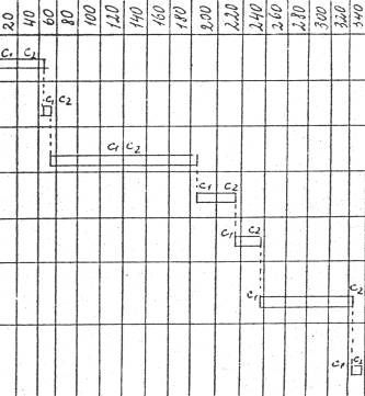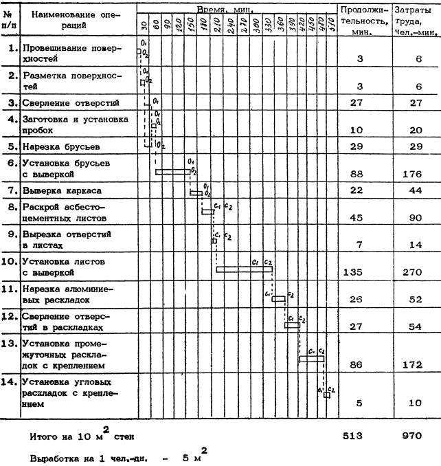 Раскрой асбоцементных листов; 45 мин.; С1 и С2; станок для резки листов. Столяр С2 подносит листы к станку, предварительно разметив их по заданным размерам, столяр С1 производит нарезку листов на станке (рис. 1). |