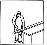 Нарезка алюминиевых раскладок; 26 мин; С1 и С2; ножовка, стоя. Столяр С2 подносит раскладки к столу, а столяр С1 производит их нарезку, предварительно разметив их по заданным размерам (рис. 3). |