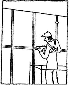 Установка промежуточных раскладок с креплением; 86 мин: С1 и С2; шуруповерт, отвертка, пассатижи, подмости. Столяры С1 и С2 (самостоятельно) устанавливают промежуточные раскладки, закрывая ими швы между установленными листами. Раскладки крепят к каркасу шурупами при помощи шуруповерта (рис. 4). Перед установкой раскладок временное крепление снимается. |