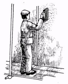 Примечание. В затраты труда включено время на подготовительно заключительные работы (4%) и отдых (15%). Снижение затрат труда и повышение выработки рабочих достигается в результате применения наиболее совершенной технологии и инструментов. 2. УСЛОВИЯ И ПОДГОТОВКА ВЫПОЛНЕНИЯ ПРОЦЕССА 2.1. До начала работ по обработке поверхностей под терразит необходимо дать штукатурке просохнуть в течение 20-24 часов (срок зависит от температуры воздуха), то есть до такого состояния, когда верхний слой штукатурки при циклевке начинает осыпаться. 2.2. Разделку поверхностей на камни выполняют после циклевки штукатурки. 2.3. Работы следует выполнять соблюдая правила техники безопасности и охраны труда рабочих в соответствии с СНиП III-A.II-70 § 17. 2.4. Режим труда и отдыха определен из условия оптимально высокого темпа выполнения трудовых процессов в соответствии с "Основами методики технического нормирования труда в строительстве", выпуск 1, приложения 2 и 3. 3. ИСПОЛНИТЕЛИ, ПРЕДМЕТЫ И ОРУДИЯ ТРУДА 3.1. Исполнители: Штукатур V разряда (Ш1) - 1 Штукатур III разряда (Ш2) - 1 3.2. Инструменты, приспособления и инвентарь