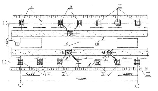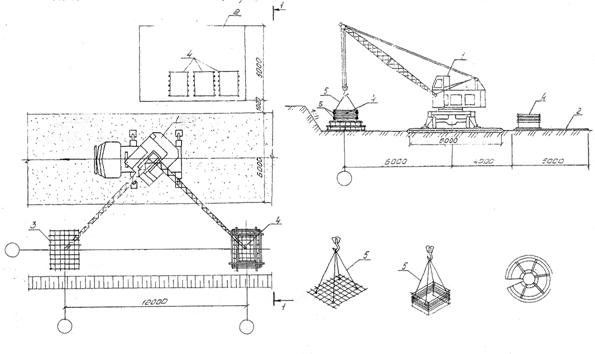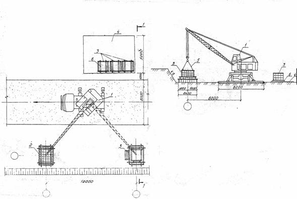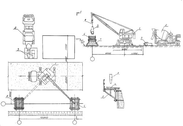 для приема бетонной смеси; 4 - место складирования арматуры и опалубки; 5 -