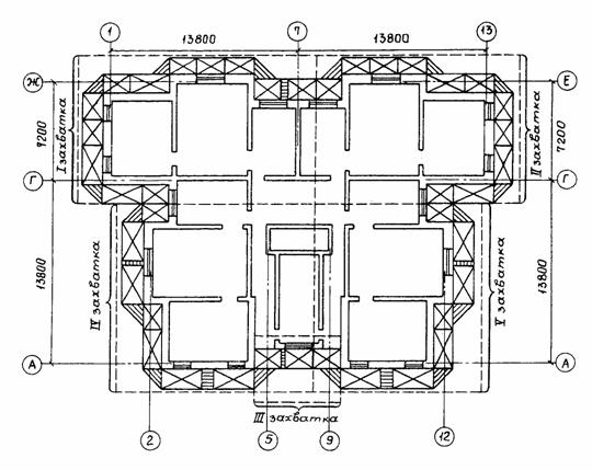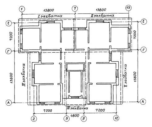 Рис. 1. План этажа. Разбивка на захватки
