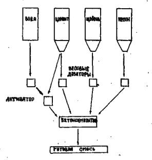 Рис. 1. Технологическая схема приготовления бетонной смеси на активированной воде