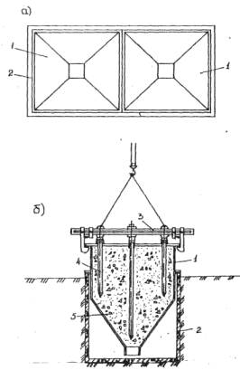 1 - вертикальная бадья; 2 - железобетонный приямок
