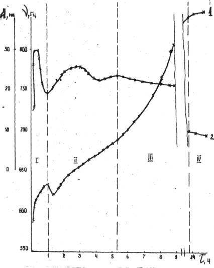 Рис. 4. Кривые кинетики процесса структурообразования растворной части бетона кл. В 30, В/Ц = 0,45