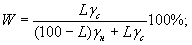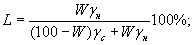 Расход связующего для наполнителей с другой плотностью (удельным весом) может быть определен по перерасчёту на объёмное содержание связующего. Между массовым (W) и объёмным (L) содержанием связующего имеется следующая зависимость:
