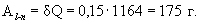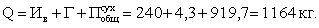 Вобщ = Q·В/Т = 1164·0,26 = 303 л.