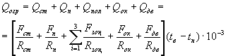 8.1.3. Теплопотери через ограждения определяем по выражению (3). Исходные данные для расчета теплопотерь через ограждения соответствуют проектным данным.