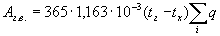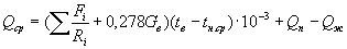 где Q(tнср) - тепловая нагрузка, рассчитанная по выражениям (12, 13, 14) при средней наружной температуре tнср и расчетных параметрах внутреннего воздуха. 2.45. Величина Кв определяется технологией и организацией производства в различных помещениях с периодической вентиляцией и может оказаться в широких пределах. Ориентировочные значения составляют: для доильных и молочных отделений - 1/3, ветсанпропускников - 1/8, помещений ветеринарного назначения и пунктов искусственного осеменения - 1/24. 2.46. Годовой расход теплоты на нагрев воды определяется по выражению: