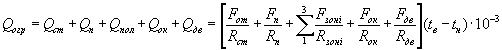 где qсв, Кt принимаются в соответствии с возрастов и весом животных по нормам [8]. 2.11. Теплопотери через ограждения определяются из выражения: