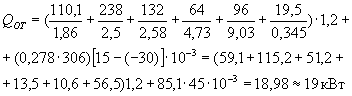 2.43. Для помещений с периодическим нахождением животных Тот определяется аналогично пп. 2.40-2.43, при теплопотоках через ограждения, равных нулю, так как они скомпенсированы потоками теплоты от систем отопления. 2.44. Годовой расход теплоты на создание искусственного микроклимата будет равна: