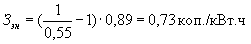 Зэ уд - удельные затраты на 1 кВт.ч энергоносителя на входе в котельную, коп.