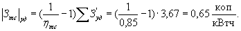 Зт уд - удельные затраты на 1 кВт.ч энергии, подведенной к установкам отопления, вентиляции и горячего водоснабжения, коп.