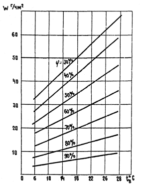 где 2.16. Сопротивление теплопередаче окон и дверей принимается по нормам [14] в соответствии с их конструктивными особенностями. 2.17. Теплопотери на испарение влаги со смоченных поверхностен пола определяются из выражения: