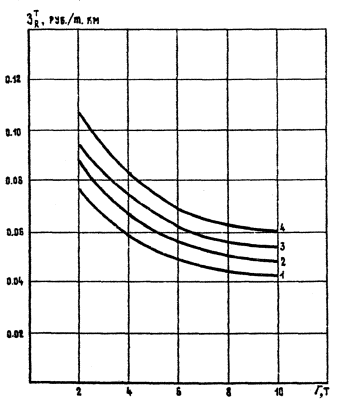 составляющая затрат на перевозку топлива в зависимости от грузоподъемности