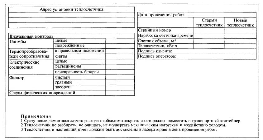 Замену неисправного теплосчетчика на новый или отремонтированный следует