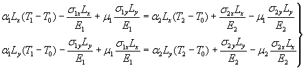 При смене температуры любой материал, асфальтобетон или цементобетон, будет стремиться изменить свои размеры в соответствии с величиной коэффициента линейного расширения а, но благодаря сцеплению между материалами, величина деформации будет одинакова для обоих. Возникшее напряженное состояние можно описать уравнениями равенства сил и перемещений: