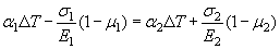 Принимая плиту цементобетона и изменение температуры для обоих материалов одинаковым, получим