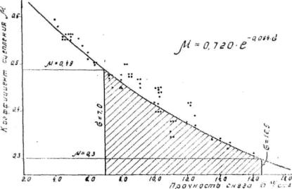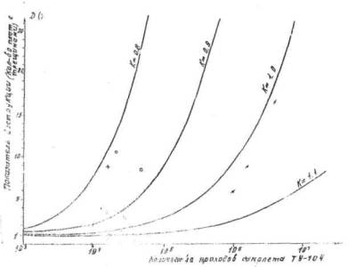Характерно, что с увеличением интенсивности движения, несмотря на сокращение срока службы покрытия между ремонтами, работоспособность их в. целом увеличивается, поскольку, чем больше интенсивность движения самолетов, тем относительно меньше сказывается влияние климатических условий на разрушение покрытия. В этом можно убедиться, если закономерность износа покрытия (как разновидности разрушения) выразить в виде линейной зависимости