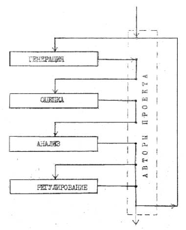 Рис 1. Принципиальная схема технологического процесса автоматизированного поиска эффективной схемы генплана. Таблица 1.1Схема технологического процесса автоматизированного проектирования генерального плана