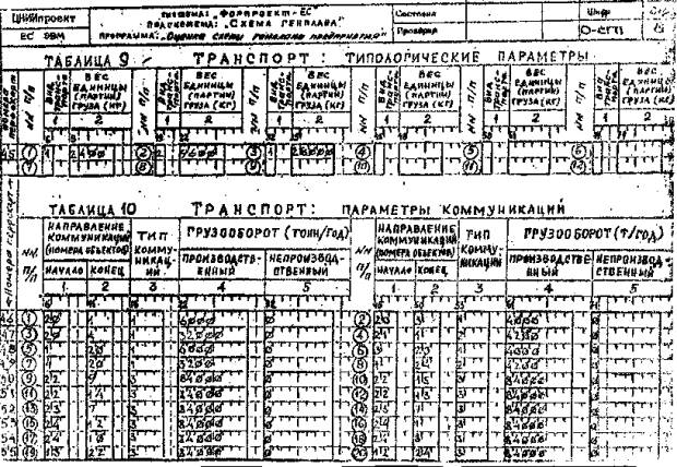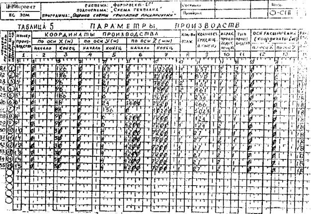* В данном примере вместимость технологических зон пропорциональна их. площади. ТАБЛИЦЫ ИСХОДНЫХ ДАННЫХ