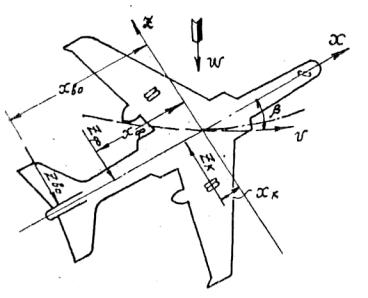 - Zво - Zф = и уравнением, связывающим моменты этих сил относительно вертикальной оси, Σ Му = Zкхк + Zвохво + Zфхф = Jyω'y (4) где хк, хво, хφ - абсциссы точек приложения сил; Jy - момент инерции самолета относительно вертикальной оси Оу. Входящие в уравнения (3) и (4) боковые аэродинамические силы можно с достаточной точностью определить по следующим приближенным формулам: Zво = аво(αво - δрнn1) аво = 0,014 + 0,013λво; (6) Zф