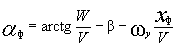 V - скорость движения самолета относительно земли; W - скорость ветра, направленная перпендикулярно оси ВПП; αво, αф - угол атаки вертикального оперения и фюзеляжа;