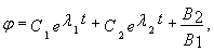 Согласно (13), коэффициенты В1 и В2 всегда отрицательны, и поэтому корни λ1 и λ2 могут быть либо вещественными и отрицательными, либо комплексно-сопряженными. Рассмотрим случай, когда корни характеристического уравнения будут вещественными. В этом случае общее решение второго уравнения системы (14) будет иметь вид: