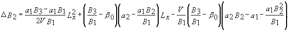 Напомним, что в итоге исследований необходимо получить уравнение вида ΔB2 = F(Lx). (19) Выражение (19) представляет собой уравнение траектории движения центра тяжести самолета в земных осях координат, где ось ОLх параллельна оси ВПП, а ось OxB0 перпендикулярна оси OLx. Система координат лежит в плоскости ВПП. Начало координат совпадает с точкой А (рис. 2), являющейся проекцией центра тяжести самолета на плоскость ВПП и соответствующей началу разворота самолета. Для вывода такого уравнения используем выражение радиуса кривизны в точке