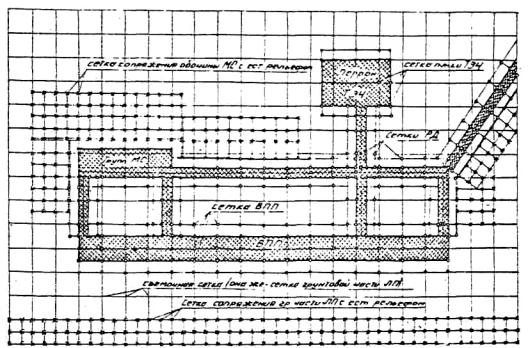 4. Пользуясь значениями средней и результирующей 5. По формуле (23) определяется искомое отклонение ΔВ2. Канд. техн. наук Ю.А. Дранишников АВТОМАТИЗАЦИЯ ПОДСЧЕТА ОБЪЕМОВ ЗЕМЛЯНЫХ РАБОТ ПРИ ПРОЕКТИРОВАНИИ ЛЕТНЫХ ПОЛЕЙ АЭРОПОРТОВВ процессе проектирования летного поля аэропорта подсчет объемов земляных работ производится несколько раз с различными целями и с различной детальностью. Так, еще на этапе выбора участка для строительства аэропорта его рельеф наряду с другими показателями оценивается объемами земляных работ по замене грунтов и созданию проектной поверхности летного поля. В дальнейшем, на стадии технического проектирования, объемы земляных работ определяются при анализе вариантов проектных решений с целью выбора наиболее оптимального. И, наконец, на стадии рабочих чертежей производится детальный подсчет объемов и других показателей проекта вертикальной планировки латного поля. Подсчет объемов на разных стадиях и этапах проектирования обычно осуществляется не только с различной детальностью, но и различными методами. Так, на стадии технического проекта могут применяться упрошенные графические методы горизонтальных профилей или изолиний рабочих отметок, в то время как на стадии рабочих чертежей, как правило, используется аналитический метод подсчета объемов по квадратам. Подсчет объемов вручную обычными методами достаточно трудоемок и кропотлив, в результате чего не исключены и ошибки. С появлением ЭВМ возникла идея об автоматизации подсчета объемов. Осуществление ее, на первый взгляд, представлялось достаточно простым делом. Тем более, что соответствующие методы и программы были разработаны для подсчета объемов земляных работ при проектировании автомобильных дорог [1], а затем и железных дорог [2]. Задача подсчета объемов на ЭВМ в проектировании летных полей аэропортов при детальном рассмотрения оказалась более сложной и своеобразной. Это объясняется тем, что определение объемов в данном случае производится для массивов грунта больших размеров в плане, но сравнительно небольшой мощности. Кроме того, эти массивы образованы поверхностями сложной формы и содержат в себе различные слои грунта, объем которых должен определяться раздельно. При создании программы должен быть также решен вопрос об оптимальном разделении труда между расчетчиком, готовящим исходную информацию, и ЭВМ. Если на расчетчика возложить большую часть подготовительной и часть расчетной работы, то программа подсчета объемов на ЭВМ будет простой и задача может быть легко решена даже на клавишных ЭВМ. Попытки такого рода были сделаны, но существенных преимуществ перед обычными расчетами такая технология проектировщикам не дала. В данной статье рассматривается метод и программа, разработанные с целью осуществить наиболее полную автоматизацию подсчета объемов на ЭЦВМ средней мощности для стадии рабочих чертежей. 1. Метод определения объемов Подсчет объемов на ЭЦВМ должен основываться на использовании исходной информации, представленной в цифровом виде. Эта информация для подсчета объемов и вообще для проектирования рельефа летных полей на ЭЦВМ [1] формируется в соответствии с так называемой цифровой моделью участка (ЦМУ). Цифровая модель участка (рис. 1) представляет собой в плане систему сеток квадратов и прямоугольников. Высот