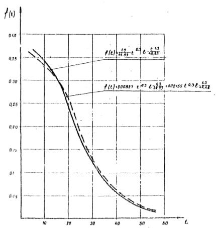 Заменяя экспериментальные частоты теоретическими, находим, что плотность распределении времен задержек вылетов для «осредненного» аэропорта в первом приближении будет равна