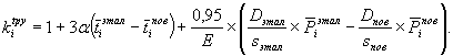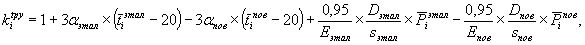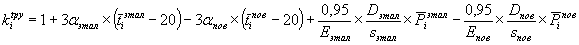 где αэтая и αпов - коэффициенты линейного расширения материала стенок ТПУ 1-го разряда и поверяемой ТПУ соответственно, °С-1, значения которых берут из приложения В; Еэтал и Епов - модули упругости материала стенок ТПУ 1-го разряда и поверяемой ТПУ соответственно, МПа, значения которых берут из приложения В; Dэтал и Dпов внутренние диаметры калиброванных участков ТПУ 1-го разряда и поверяемой ТПУ соответственно, мм, значения которых берут из эксплуатационной (заводской) документации (паспортов) на ТПУ; sэтал и snов - толщины стенок калиброванных участков ТПУ 1-го разряда и поверяемой ТПУ соответственно, мм. Значения sэтал и sпов берут из эксплуатационной документации (паспортов) на ТПУ. Примечание