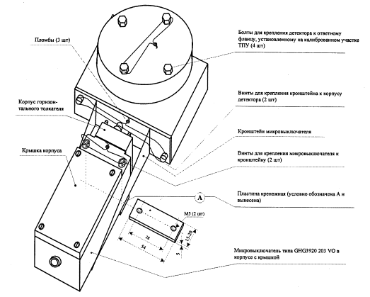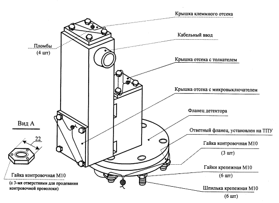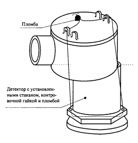 10.6 К протоколу поверки (свидетельству о поверке) прилагают перечень детекторов и средств измерений, установленных на поверяемой ТПУ (приложение А). 10.7 Проводят пломбирование фланцев калиброванного участка и детекторов ТПУ. Пломбирование детектора должно исключить несанкционированный доступ к толкателю(ям) и микровыключателю детектора. На пломбы наносят оттиски личного клейма поверителя, соответствующего требованиям ПР 50.2.007. Примеры пломбирования приведены в приложении Ж. Примечания 1 Для пломбирования фланцев калиброванного участка ТПУ, фланца детектора, применяемого на ТПУ типа «Сапфир», на крепежные шпильки (дополнительно к крепежным гайкам) рекомендуется устанавливать контровочные гайки по ОСТ 1 11745-74, или по ОСТ 1 33033, или изготовленные по месту эксплуатации ТПУ (см. рисунки Ж.1 и Ж.4 приложения Ж). 2 Рекомендуется использовать витую контровочную проволоку. Допускается в качестве контровочной проволоки использовать леску диаметром (0,7 ÷ 0,8) мм. 10.8 При отрицательных результатах поверки ТПУ к применению не допускают, свидетельство о поверке аннулируют. Оттиски клейм, нанесенные на пломбах, установленных на фланцах калиброванного участка ТПУ и на детекторах, гасят. Оформляют извещение о непригодности ТПУ к применению по ПР 50.2.006 с указанием причин непригодности. 10.9 В межповерочном интервале ТПУ при необходимости проводят замену установленного на ТПУ средства измерений с оформлением (заполнением) листа регистрации замены согласно приложению А и соответствующей записью в формуляре ТПУ. Метрологические характеристики вновь установленного средства измерений: не хуже метрологических характеристик демонтируемого. 10.10 Замена средства измерений, установленного на ТПУ, внеочередной поверки ТПУ не требует. При замене одного или нескольких детекторов (или замене их микровыключателей) внеочередная поверка ТПУ обязательна. Примечания 1 Значения вместимости V0i,