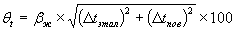 θt - граница составляющей неисключенной систематической погрешности, обусловленная погрешностью измерений температуры датчиками температуры или термометрами с местным отсчетом результатов измерений, %, вычисляемая по формуле (23);