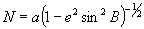 где N - радиус кривизны первого вертикала, перпендикулярный к меридиану, вычисляемый по формуле