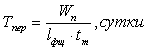 где W n- планируемый годовой объем ремонта пути на поездоучастке, км; nm - число «окон», которое может быть предоставлено в неделю в зависимости от заполнения пропускной способности; lф - расчетная норма выработки исполнителем работ в «окно», км. 4 - количество недель в месяце. Если по условиям заполнения пропускной способности можно предоставить три и более «окна» в неделю, то при расчете продолжительности ремонтного периода число «окон» принимается в зависимости от установленной организации и технологии производства работ. В тех случаях, когда необходимая продолжительность выполнения ремонта пути, полученная по формуле (1), превышает сезон или установленный МПС России срок, предусматривается одновременная работа нескольких путевых машинных станций (далее - ПМС). Количество ПМС, которые одновременно должны работать на поездоучастке, устанавливается в зависимости от заданного объема ремонта, срока его выполнения и числа «окон», предоставляемых в неделю. Работы по усиленному капитальному и капитальному ремонтам на новых и старогодных материалах, усиленному среднему ремонту с глубокой очисткой при выполнении их на двухпутных (многопутных) участках, как правило, должны выполняться на перегонах закрытых для движения поездов на 6-10 суток. Необходимый период времени для выполнения планового объема работ с закрытием перегона определяется по лимитирующей машине (щебнеочистительной) по следующей формуле: