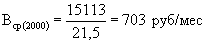 4.2. Используя формулу 2, производим расчет величины базовой цены. Цб(2000) = Bср(2000)×Куч(кв)×Чп×Тб Среднемесячную выработку (Вср(2000)) рассчитываем по формуле 3: